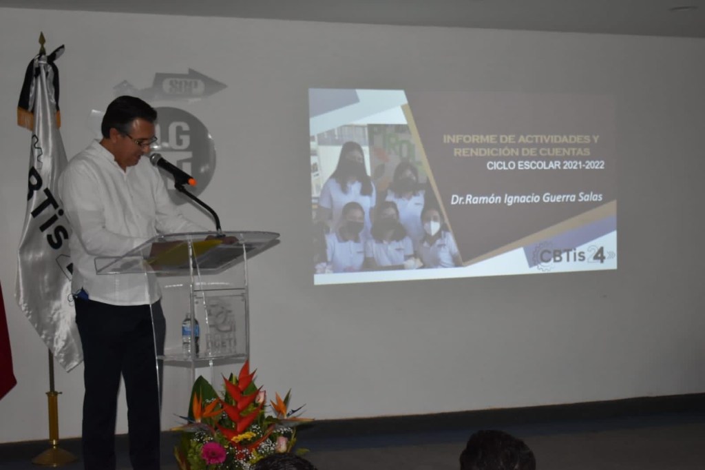 Ciudad Victoria, Tamaulipas.- Dentro del marco de actividades en el arranque del nuevo ciclo escolar 2022-2023, el director del Centro de Bachillerato Tecnológico Industrial y de Servicios 24, Ramón Ignacio Guerra Salas, brindó su informe de actividades y la rendición de cuentas del ciclo pasado.