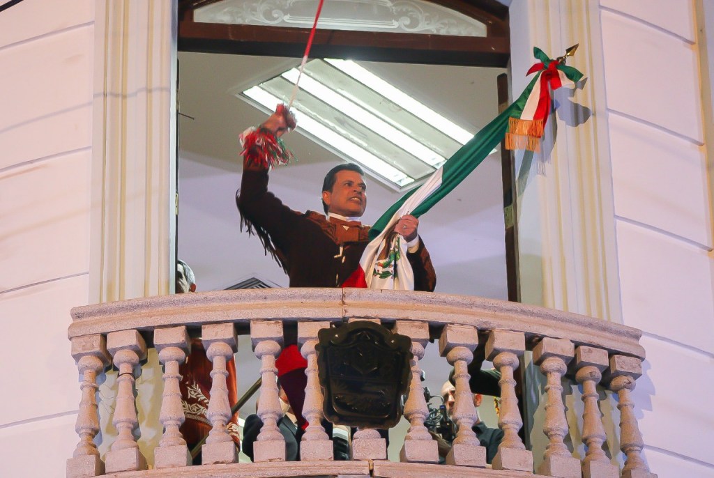 Después de 30 años de no celebrarse este acto cívico, salieron a las 22:50 horas al ventanal del histórico edificio para, junto a sus esposas Lucía Rodríguez de Gattás y María de la Luz Santiago de Villarreal, replicar la campana, ondear la bandera de México y brindar con el pueblo de Victoria respeto a los héroes de la patria.