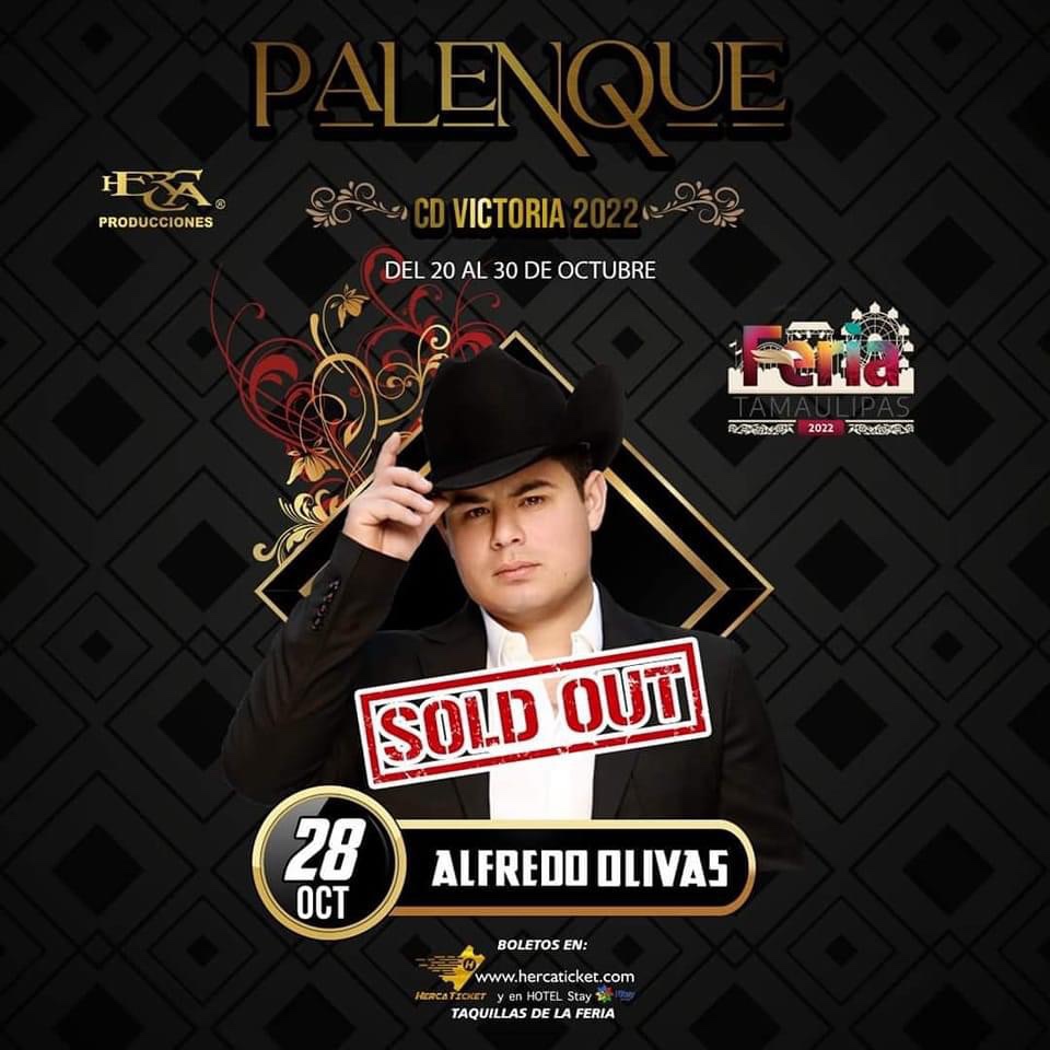 La página oficial publicó en Facebook “Nos complace informar que tenemos Sold Out para Alfredo Olivas Oficial, Gracias Tamaulipas por su respuesta nada seria posible sin ustedes, Herca Producciones”.