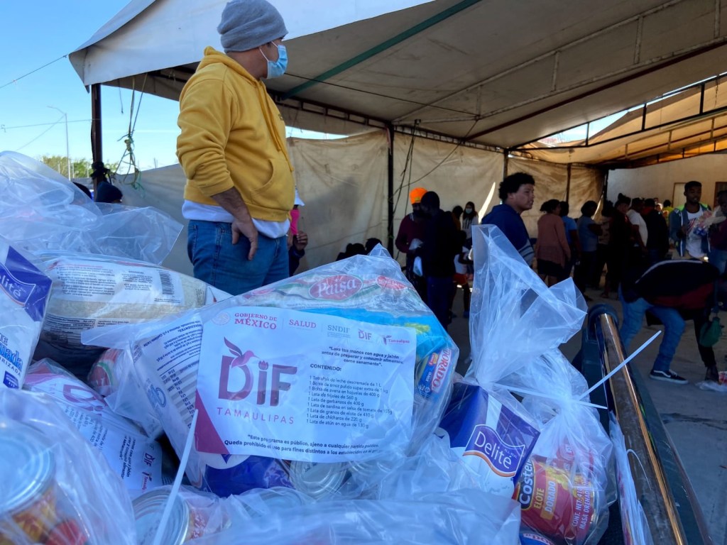 Ciudad Reynosa, Tamaulipas.- En uno de los albergues más socorridos de esta ciudad fronteriza, el Sistema para el Desarrollo Integral de la Familia de Tamaulipas, que preside María de Villarreal, hizo entrega de dotaciones alimentarias que garantizan el derecho de las personas migrantes a una alimentación sana y de calidad.