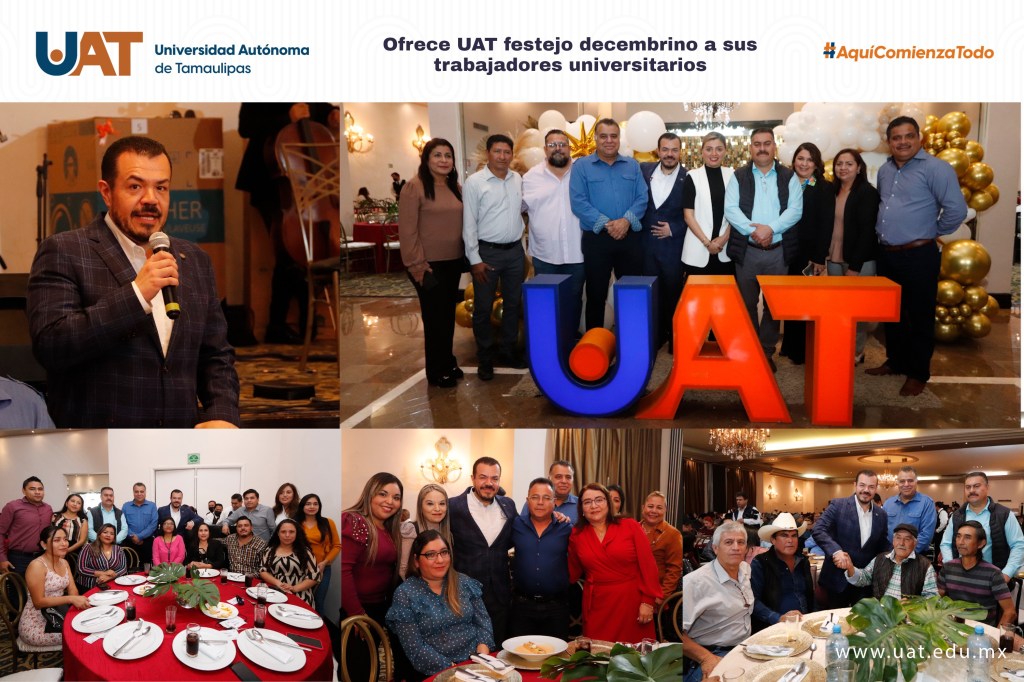 Ciudad Victoria, Tamaulipas.- La Universidad Autónoma de Tamaulipas (UAT) ofreció el tradicional festejo de la temporada decembrina para los trabajadores sindicalizados que laboran en las diferentes dependencias que la casa de estudios tiene en la capital del estado.