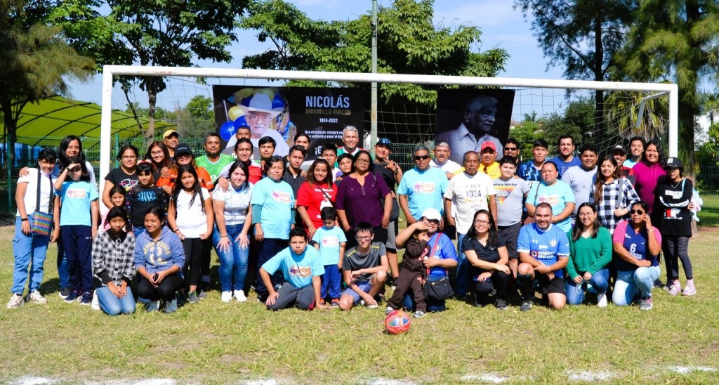 Ciudad Victoria, Tamaulipas.- A 100 días de su llamado por Dios, Don Nicolás Jaramillo Ávalos fue recordado con un partido de futbol en cancha chica en el que se dieron cita hijos, yernos, nueras, nietos, bisnietos e invitados de la familia, y que resultó muy emotivo con dos tiempos de 25 minutos con marcador final empatado a un gol por bando.