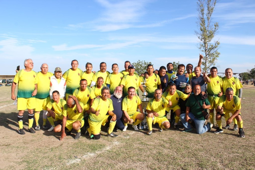 Al terminar el encuentro Javier Hernández Martínez, dirigente del futbol veteranos, entregó el simbólico trofeo para la fotografía del recuerdo.