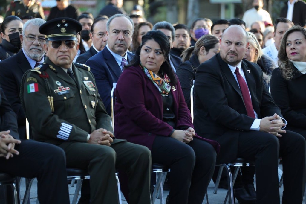 En el marco de esta actividad, se efectuaron los Honores a la Bandera Nacional y al Escudo del Estado, con la presencia de la Diputada Alejandra Cárdenas Castillejos, y los Diputados Gustavo Cárdenas Gutiérrez y Juan Vital Román Martínez, así como integrantes del gabinete estatal, Congreso del Estado, autoridades militares y de los tres niveles de Gobierno.
