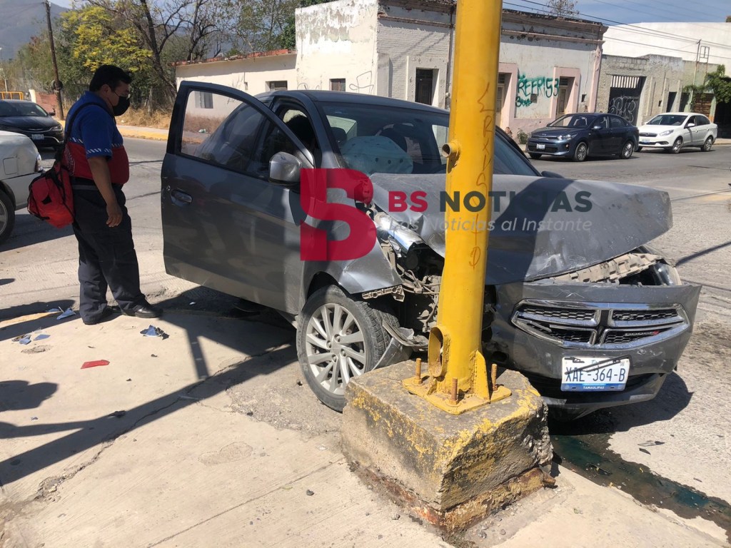 Los vehículos Dodge Attitude y Nissan sentra sufrieron daños materiales por los 30 mil pesos al estrellarse entre sí y luego el Attitude se proyectó contra la base de un semáforo.