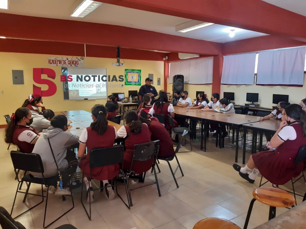 Ciudad Victoria, Tamaulipas.- Estudiantes de primero y segundo grado de la Escuela Secundaria Técnica 71 de Ciudad Victoria recibieron información por parte de la Policía Cibernética de cómo prevenir delitos al utilizar internet.
