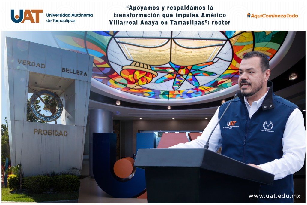 Ciudad Victoria, Tamaulipas.- “La Universidad Autónoma de Tamaulipas (UAT) reafirma su respaldo a las políticas de transformación que impulsa el gobernador Américo Villarreal Anaya, cuyas acciones en estos primeros meses de su gestión son fundamentales para asegurar el desarrollo y bienestar de la población tamaulipeca”, expresó el rector Guillermo Mendoza Cavazos.