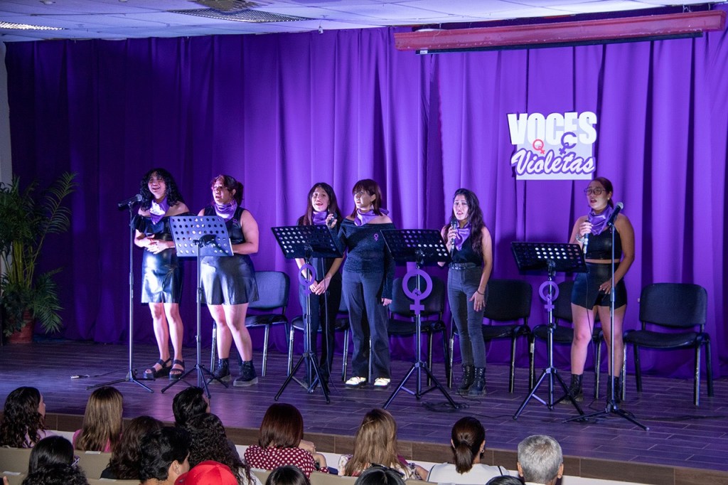 En ese contexto, la Dirección de Cultura y Arte llevó a cabo el recital denominado “Voces Violetas”, en el cual, estudiantes universitarias participaron con lecturas y canciones que resaltan las diferentes luchas por los derechos de las mujeres y la igualdad de género.