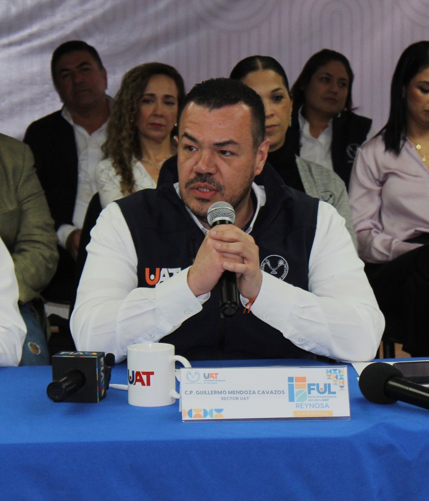 Ciudad Victoria, Tamaulipas.- El rector de la Universidad Autónoma de Tamaulipas (UAT), C. P. Guillermo Mendoza Cavazos, presidió la presentación de la segunda edición de la Feria Universitaria del Libro(FUL) UAT 2023, la cual se llevará a cabo en las sedes de Ciudad Victoria, Reynosa, Nuevo Laredo, y Tampico.