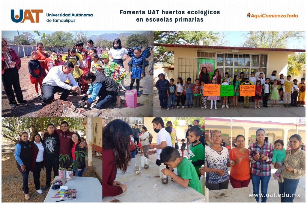 Ciudad Victoria, Tamaulipas.- Estudiantes de la Universidad Autónoma de Tamaulipas (UAT) realizaron el taller de elaboración de composta y siembra en macetas ecológicas en la primaria Niños Héroes, ubicada en el ejido El Refugio, donde brindaron asesoría para la reforestación y recomendaciones para la elaboración del huerto escolar de esa institución educativa del municipio de Victoria.