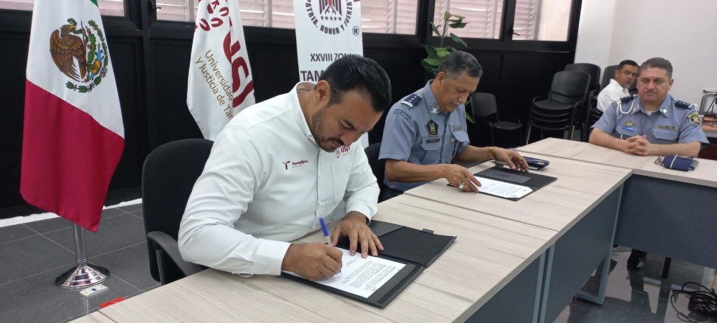 Ciudad Victoria, Tamaulipas.- A fin de coordinar acciones de interés común que permitan cumplir los objetivos institucionales, el Pentatlón Deportivo Militarizado Universitario A.C. y la Universidad de Seguridad y Justicia de Tamaulipas firmaron un acuerdo de colaboración.