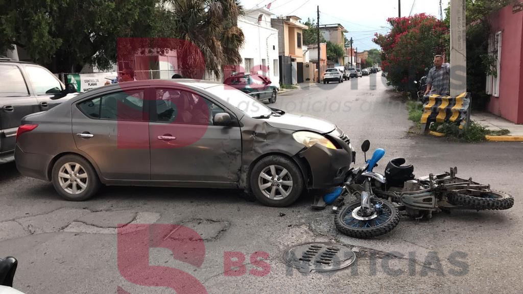Ciudad Victoria, Tamaulipas.- Un joven motociclista resultó lesionado después de impactarse contra un automóvil cuya conductora ignoró un disco metálico de alto.