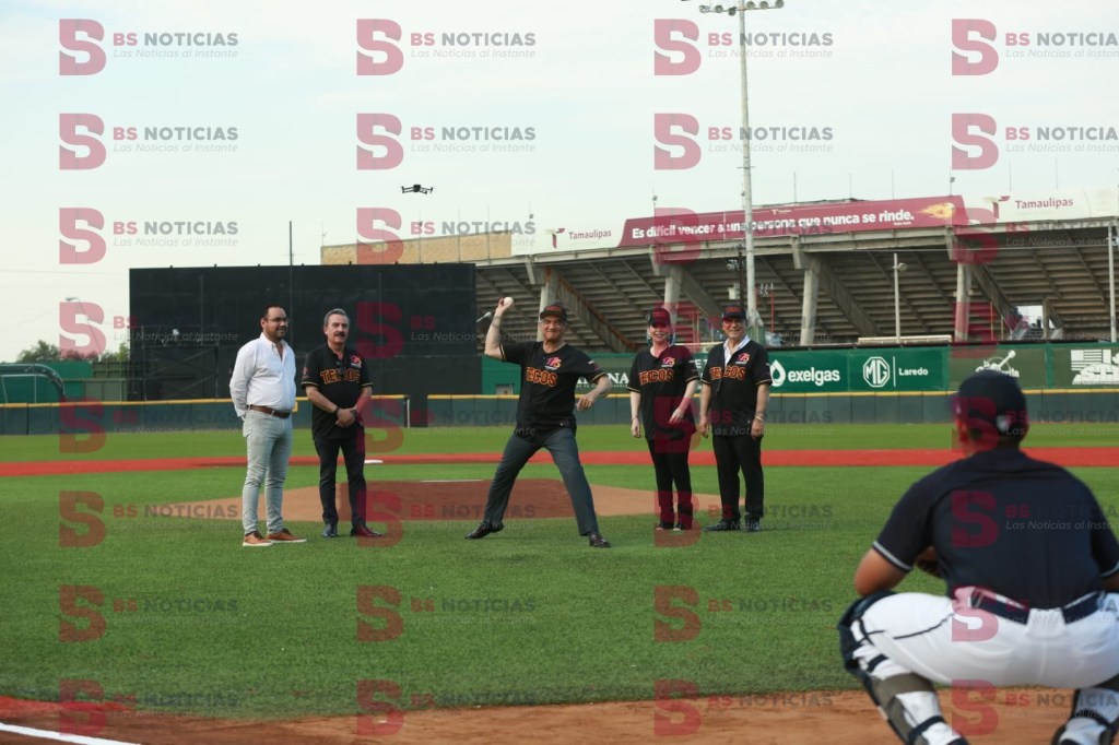 Nuevo Laredo, Tamaulipas.- Como parte de los festejos por el 175 aniversario de esta ciudad, el gobernador del Estado, Américo Villarreal Anaya, realizó el lanzamiento de la primera bola durante el partido entre los Tecolotes de los Dos Laredos y los Mariachis de Guadalajara.