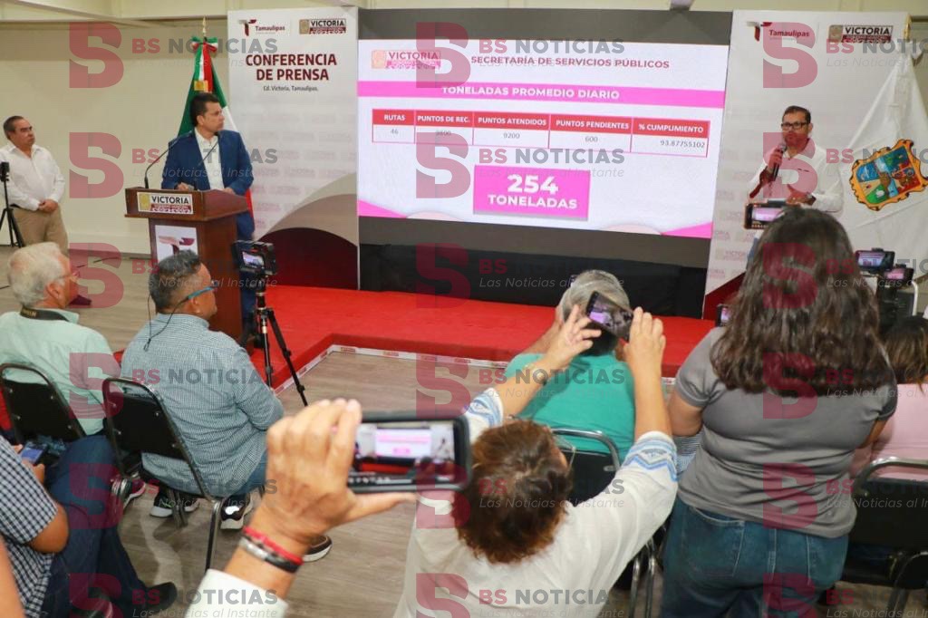 Ciudad Victoria, Tamaulipas.- El Secretario de Servicios Públicos del Gobierno Municipal, Mauricio Valdez Sánchez, informó hoy que el servicio de recolección de basura en la ciudad de Victoria se encuentra operando al 93.87% de su capacidad total.