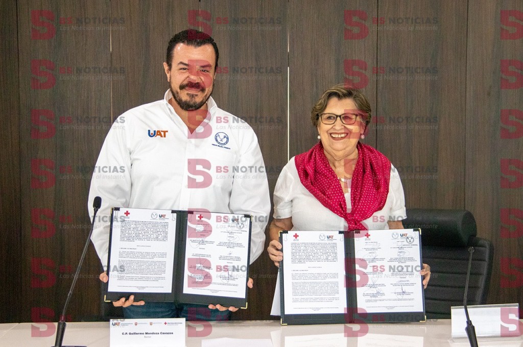 Ciudad Victoria, Tamaulipas.- La Universidad Autónoma de Tamaulipas (UAT) y la delegación estatal de la Cruz Roja Mexicana formalizaron un convenio de colaboración que permitirá a los prestatarios de servicio social de las carreras de Medicina, Enfermería y Psicología de Matamoros apoyar en las acciones que realiza la benemérita institución.