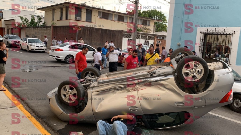Ciudad Victoria, Tamaulipas.- Por ignorar un disco metálico de alto, el conductor de un automóvil ocasionó un aparatoso choque con volcadura en la zona centro de esta Capital.