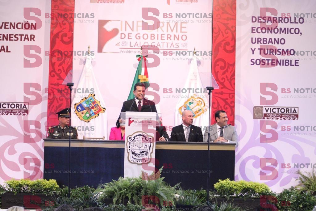 En el Polyforum capitalino declarado recinto oficial el alcalde Lalo Gattás entregó, ante el secretario General de Gobierno Héctor Villegas González, representante del gobernador Américo Villarreal Anaya, a integrantes del Cabildo el documento que contiene el trabajo realizado en este segundo año de ejercicio, ante los representantes de los tres poderes del Estado y del pueblo de Victoria con el que ha trabajado de la mano durante su Gobierno.