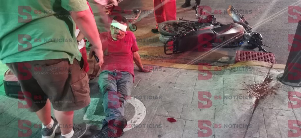 Ciudad Victoria, Tamaulipas.- Un motociclista en presunto estado de ebriedad terminó hospitalizado después de estrellarse contra la parte posterior de un automóvil en la zona centro de esta Capital.