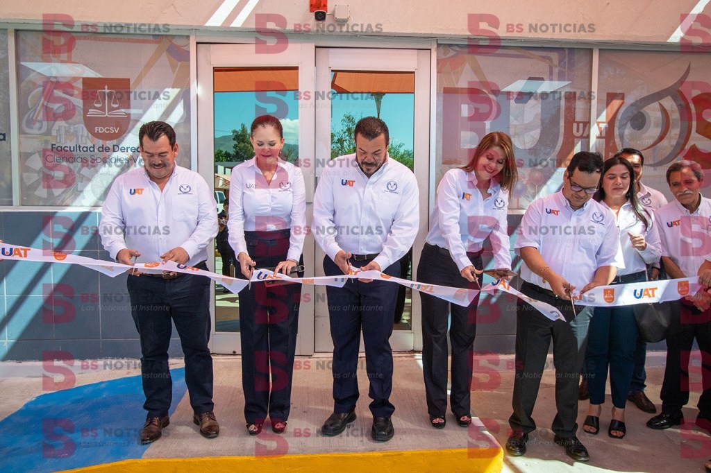 Ciudad Victoria, Tamaulipas.- El C. P. Guillermo Mendoza Cavazos, rector de la Universidad Autónoma de Tamaulipas (UAT), visitó la Facultad de Derecho y Ciencias Sociales Victoria (FDCSV), donde entregó equipo de cómputo, inauguró la remodelación de diversas áreas y puso en marcha nueva infraestructura que fortalecerá los servicios educativos de este plantel universitario.