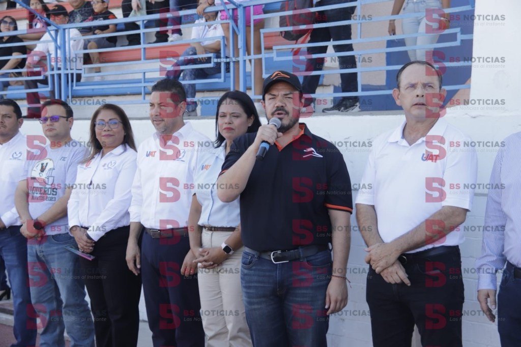 Acompañado por titulares de las diferentes facultades y unidades académicas de la UAT, el rector se trasladó al centro del campo para dar la patada inicial del torneo y del encuentro inaugural entre los Cuernos Largos de la Facultad de Medicina Veterinaria y Zootecnia y los Vaqueros de la Facultad de Ingeniería y Ciencias.