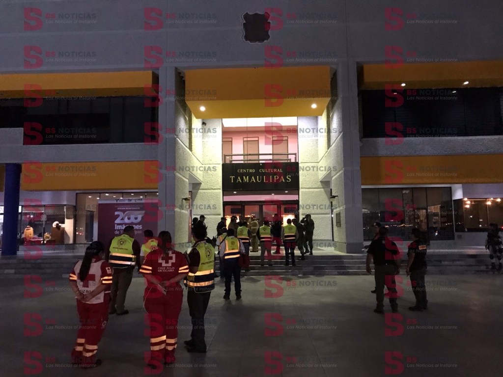 En respuesta al llamado realizado al número de emergencias 911 se activó el protocolo correspondiente y acudió al Centro Cultural Tamaulipas personal especializado de la Secretaría de Seguridad Pública con un binomio canino, personal de la Guardia Nacional así como los cuerpos de Protección Civil municipal y estatal, y paramédicos de Cruz Roja Mexicana y Protección Civil.