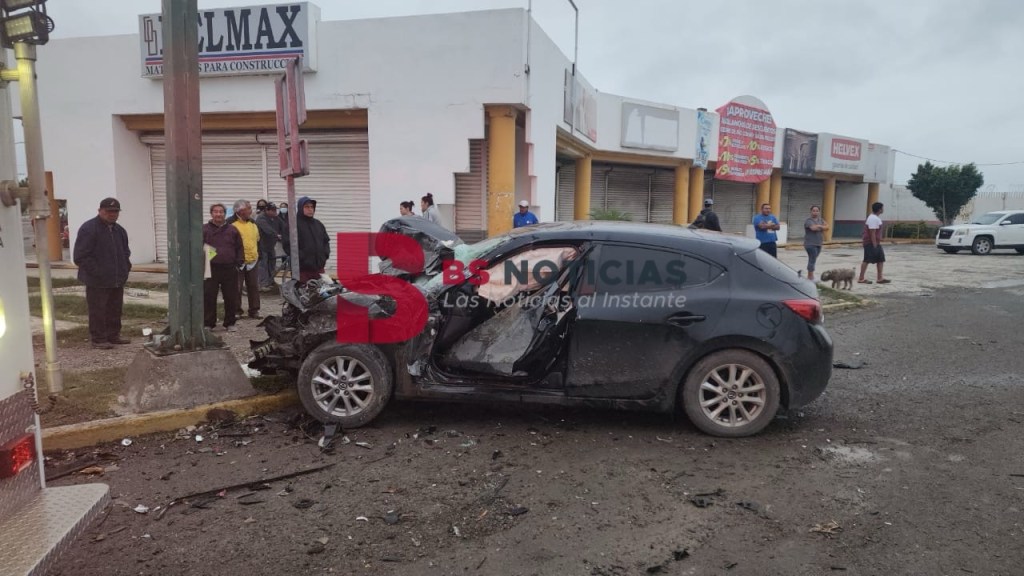 Casi llegando al cruce con la avenida 16 de Septiembre el Mazda se estrelló contra la parte posterior de una camioneta Nissan Estaquitas que se encontraba haciendo alto.