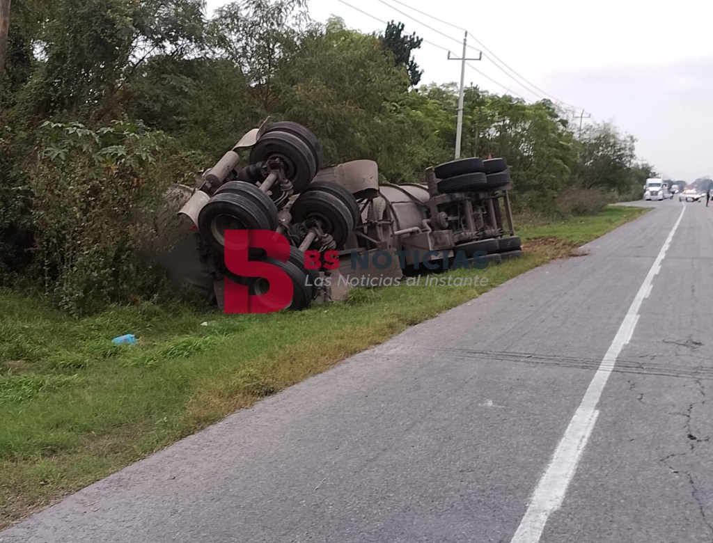 La volcadura se suscitó fuera de la cinta asfáltica y no se registraron personas lesionadas.