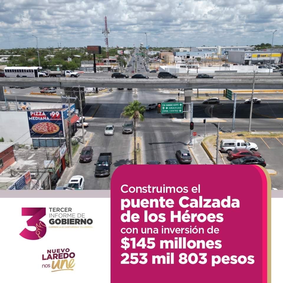 Nuevo Laredo, 11 de septiembre de 2024.- La administración municipal encabezada por Carmen Lilia Canturosas desvio fondos destinados a 48 obras públicas en diversas colonias de la ciudad para financiar la construcción del puente de la Calzada de los Héroes, obra que ha generado controversia no solo por su utilidad, sino también por el incremento en su costo y las acusaciones de favoritismo hacia la constructora Tracotamsa.