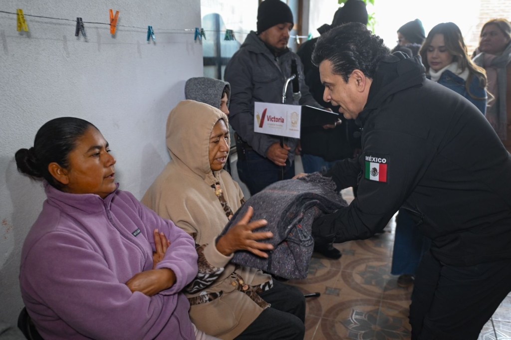 Con cobertores, alimentos calientes y asistencia médica, el presidente municipal de Victoria Eduardo Gattás Báez y la presidenta del Sistema DIF Lucy de Gattás