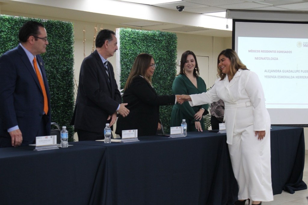 La ceremonia incluyó la entrega de constancias a los egresados de las especialidades de Anestesiología, Pediatría, Imagenología Diagnóstica y Terapéutica, Cirugía General, Medicina Crítica, Medicina Interna y Neonatología.