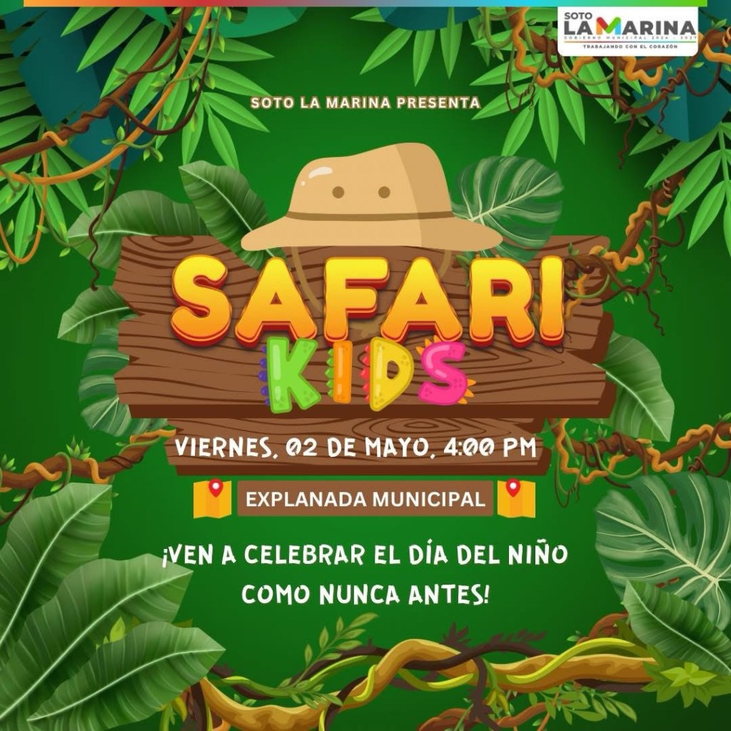 Soto la Marina, Tamaulipas.- Este Día del Niño promete ser una aventura inolvidable para todos los pequeños de Soto la Marina. El gobierno municipal que encabeza la presidenta municipal, Glynnis Georgina Jiménez Vázquez, invitó a las familias a participar en el evento Safari Kids, una tarde llena de sorpresas, juegos y actividades para celebrar a las niñas y niños.