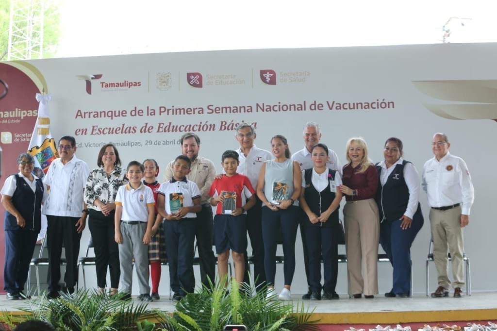 Ciudad Victoria, Tamaulipas. – Al poner en marcha la primera Semana Nacional de Vacunación en escuelas de educación básica y tras cumplir un compromiso que hizo hace pocas semanas de entregar dispositivos informáticos móviles a estudiantes de la escuela primaria “Felipe Pescador”, el gobernador Américo Villarreal Anaya aseguró que las niñas y los niños son la felicidad presente de Tamaulipas y la felicidad de una nueva sociedad que busca un futuro de bienestar con una visión humanista.