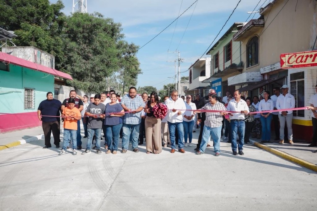 Soto la Marina, Tamaulipas.- Con el objetivo de mejorar la movilidad y brindar mayor seguridad a la ciudadanía, la alcaldesa de Soto la Marina, Glynnis Jiménez Vázquez, encabezó este martes el corte de listón inaugural de la rehabilitación con concreto hidráulico de la calle Benito Juárez, en el tramo comprendido entre Salvador Díaz Mirón y Cuauhtémoc, en la zona centro del municipio.