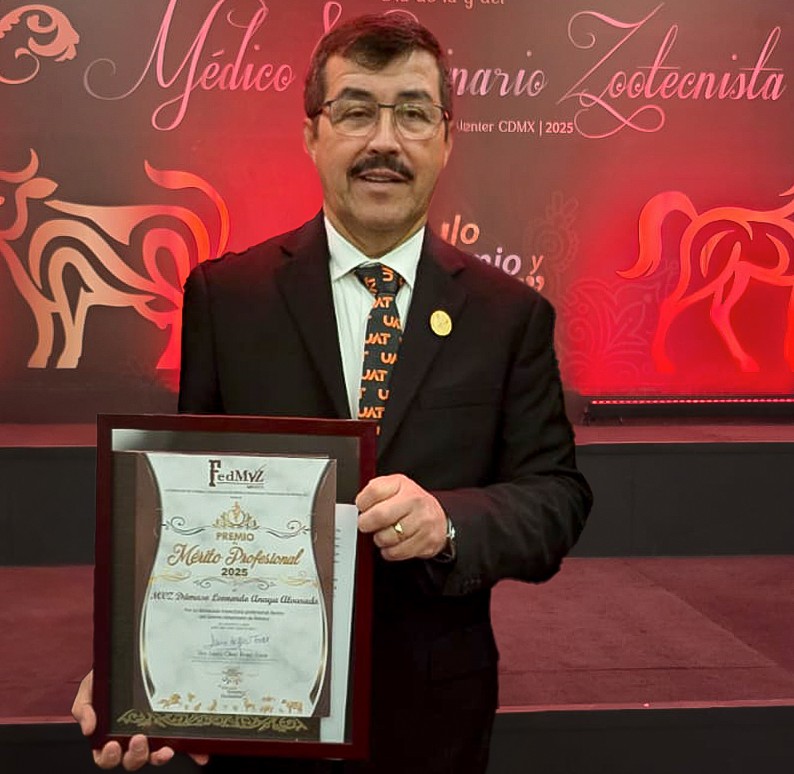 El Premio al Mérito Profesional 2025, es considerado una de las distinciones más altas otorgadas por la FedMVZ, la máxima organización gremial que representa a las médicas y médicos veterinarios zootecnistas de México a nivel nacional e internacional. Dámaso Anaya Alvarado es médico veterinario zootecnista por la UAT, cuenta con las maestrías en Producción Animal y en Administración de Empresas Agropecuarias; en su trayectoria se ha desempeñado como profesor en la UAT, impartiendo clases de Nutrición Animal, contribuyendo al fortalecimiento académico y profesional de numerosas generaciones de estudiantes.