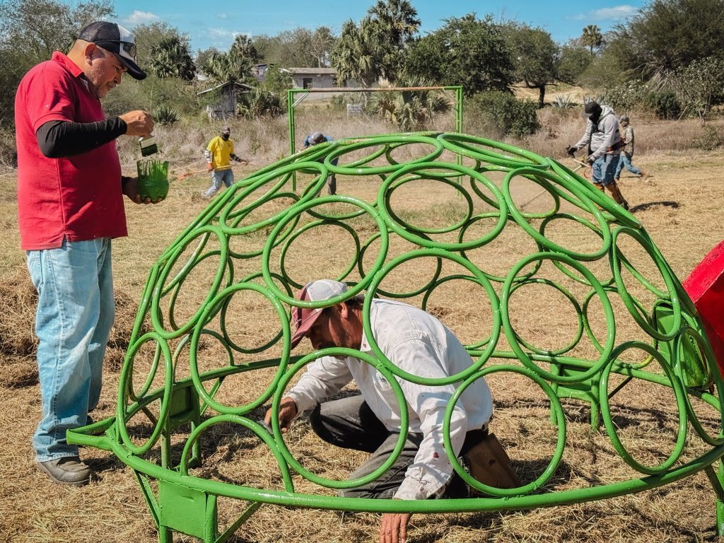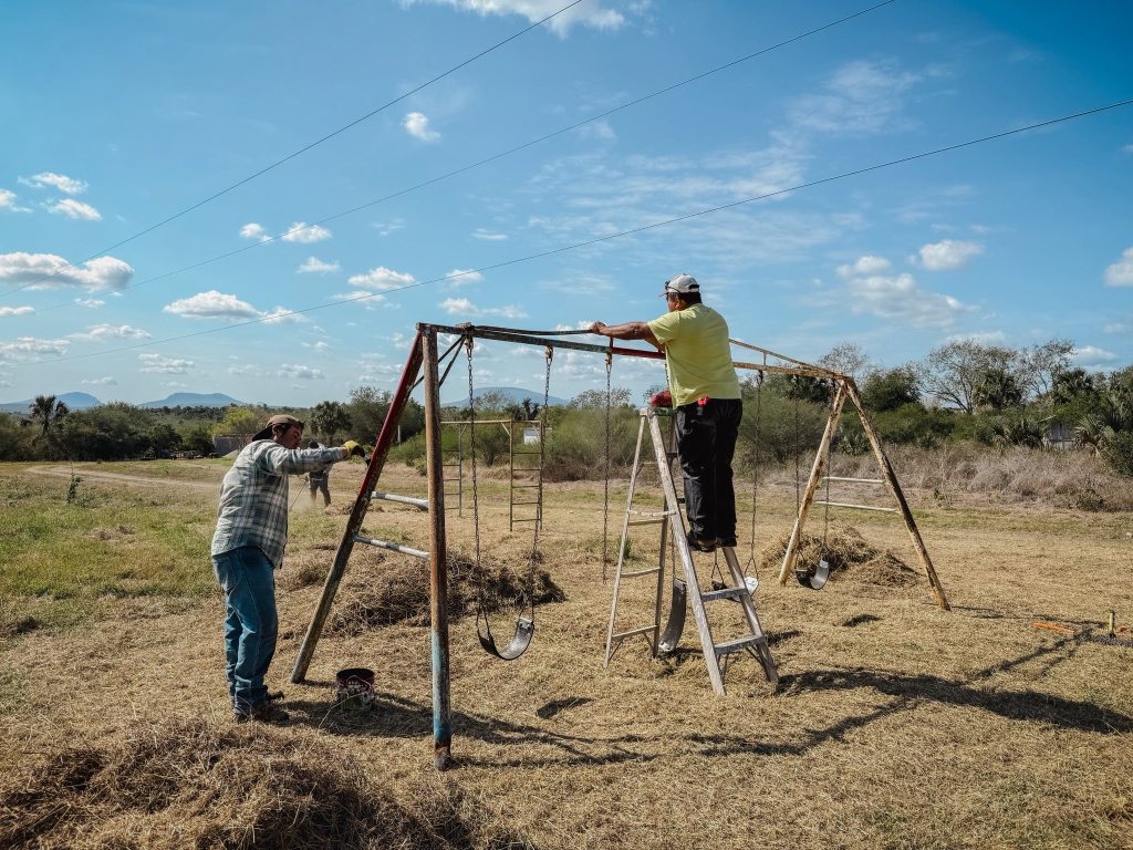 “A través del equipo de Servicios Públicos Municipales, realizamos trabajos de limpieza, mantenimiento y pintura de los juegos infantiles en áreas verdes del Ejido 10 de Mayo”, señaló.