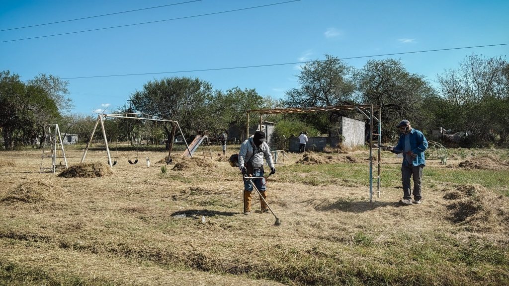 Soto la Marina, Tamaulipas.- La alcaldesa de Soto la Marina, Glynnis Jiménez Vázquez, informó que el Gobierno Municipal llevó a cabo trabajos de rehabilitación en espacios públicos del ejido 10 de Mayo, como parte de las acciones permanentes para el mejoramiento de áreas recreativas.