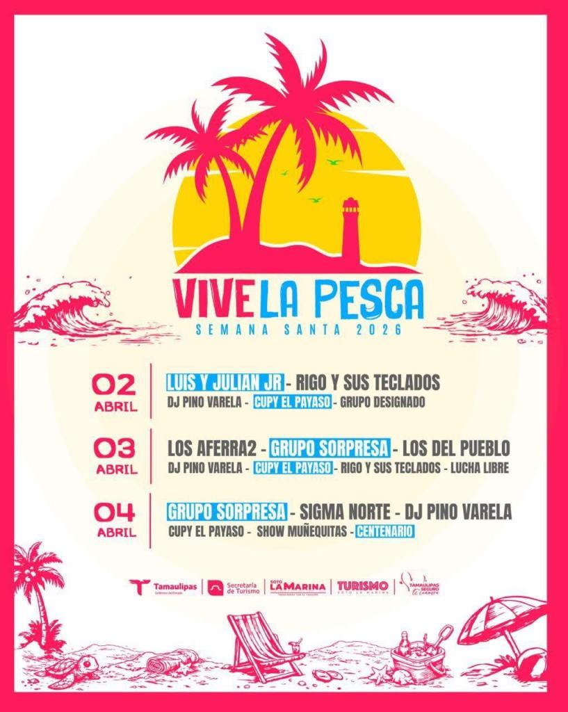 Ciudad Victoria, Tamaulipas.- La alcaldesa de Soto la Marina, Glynnis Jiménez Vázquez, anunció la realización del festival “Vive La Pesca, Semana Santa 2026”, un evento que reunirá actividades artísticas, espectáculos y presentaciones musicales con el objetivo de fortalecer la convivencia familiar y detonar la actividad turística en el municipio durante el periodo vacacional.